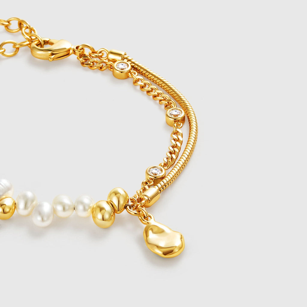 Coast Pearl Bracelet. Die verstreuten Perlen schmücken wie eine glatte Küstenlinie das Handgelenk mit einer freigeistigen, unkonventionellen Note und verkörpern ein perfektes Gleichgewicht aus Rationalität und Freiheit, wodurch eine Atmosphäre anspruchsvoller Eleganz entsteht.