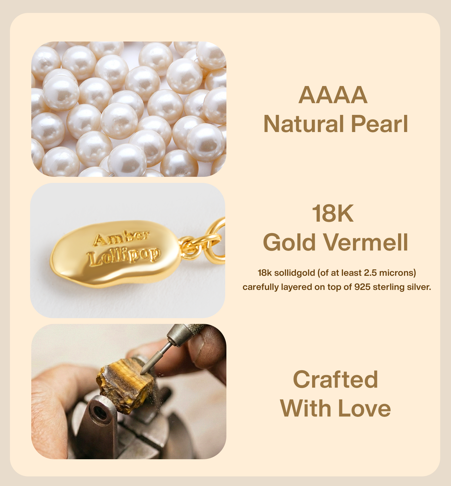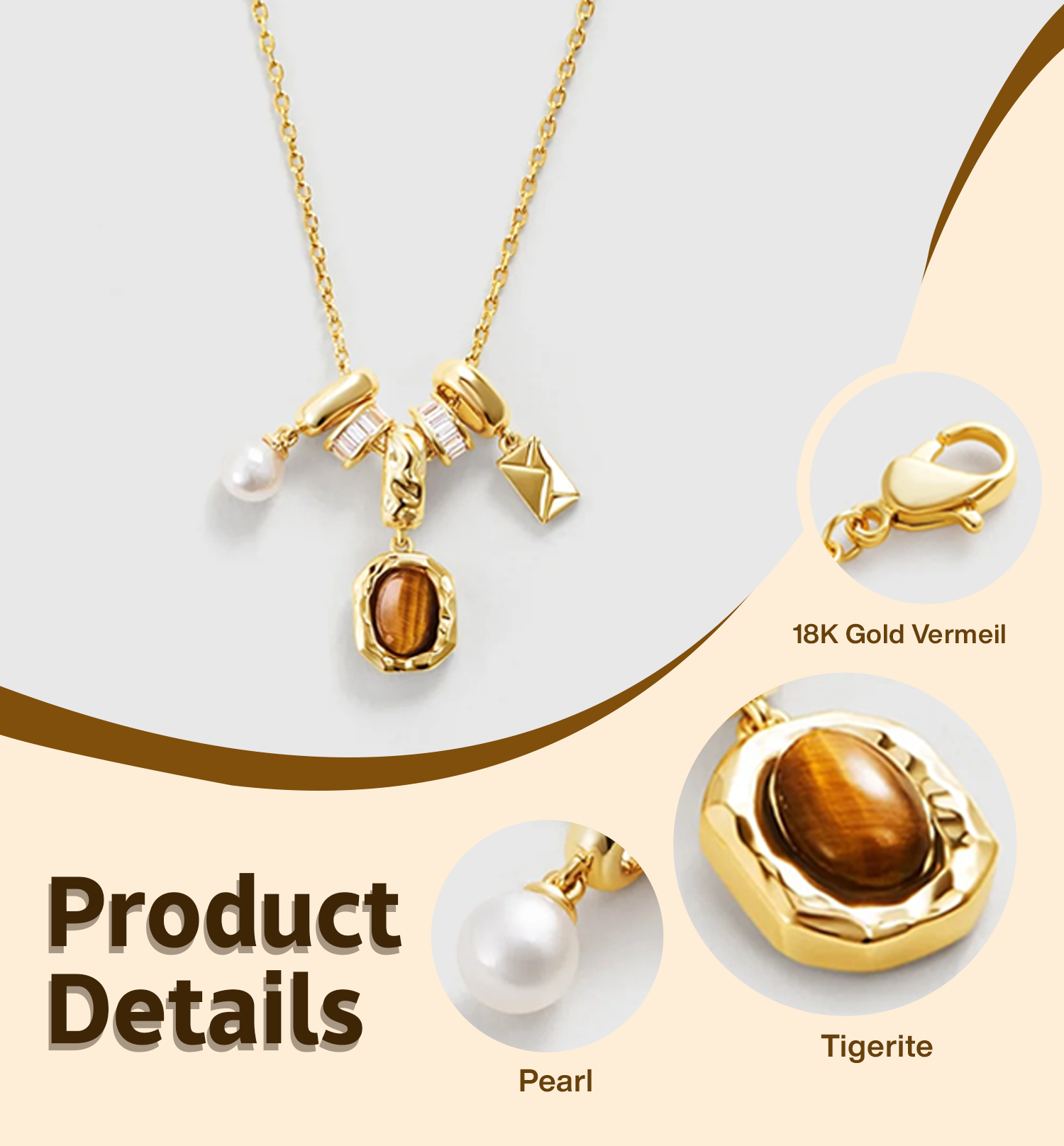 Metal: 18K Gold Vermeil Gemstone: Tigerite & Pearl Dimensions: About 6mm Total Length: 400mm, adjustable 400-450mm Weight: About 7.6g